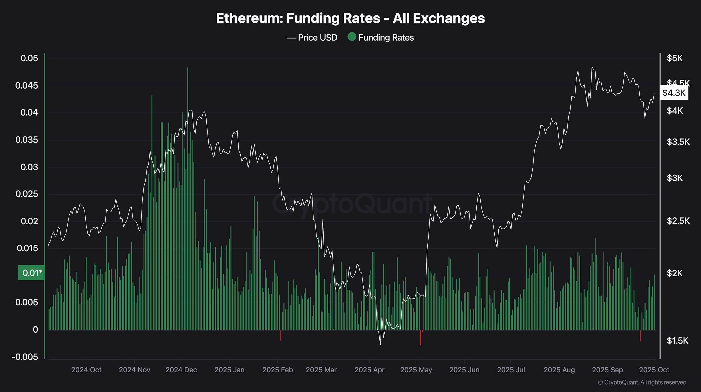 Ethereum funding rates have recently bounced back into positive territory after briefly turning negative during the latest price drop. This negative dip showed that short sellers had taken control, pushing funding rates below zero as the market leaned heavily bearish.